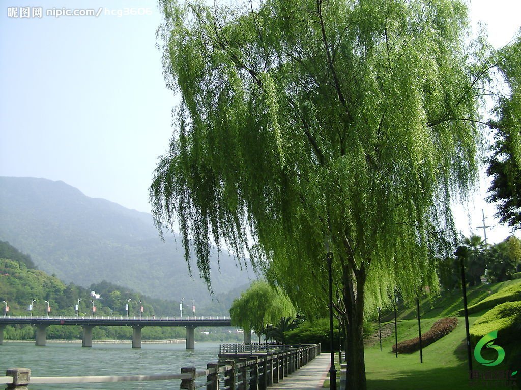 柳树。因枝条下垂,故称。 南朝梁简文帝《长安道》诗:“落花依度幰,垂柳拂行轮。” 元 萨都剌 《游西湖》诗之六:“垂柳阴阴 苏小 家,满湖飞燕趁杨花。”艾芜《鞍钢啊,我回来了》:“街灯灿然,垂柳袅袅,高楼栉比,马路广阔。”孔羽《睢县文史资料·袁氏陆园》:“袁家山(袁可立别业)外有壕沟、湖水围绕。春夏蒲苇丛生,垂柳依依,时有佳禽啾鸣,清幽宜人。”
