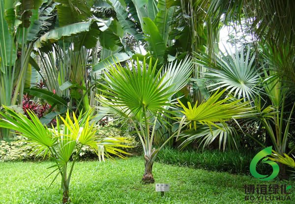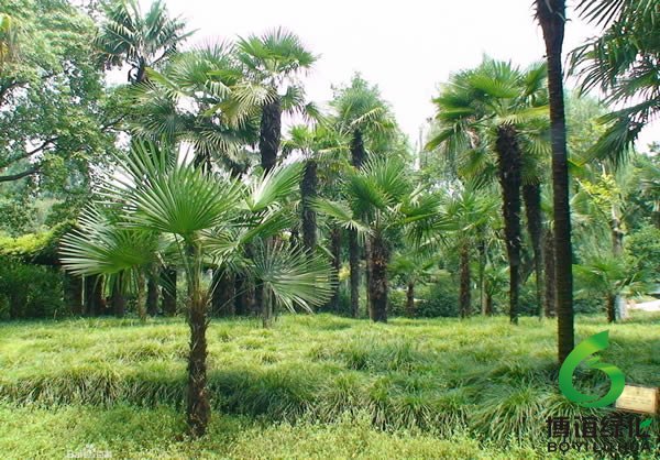 棕榈树属常绿乔木,高约7米;干直立,不分枝,为叶鞘形成的棕衣所包;叶子大,集生干顶,掌状深裂,叶柄有细刺;夏初开花,肉穗花序生于叶间,具有黄色佛焰苞;淡蓝黑色近球形核果,有白粉。树干圆柱形,常残存有老叶柄及其下部的叶崤,它原产我国,除西藏外我国秦岭以南地区均有分布,常用于庭院、路边及花坛之中,适于四季观赏。木材可以制器具,叶可制扇、帽等工艺品,根入药。
